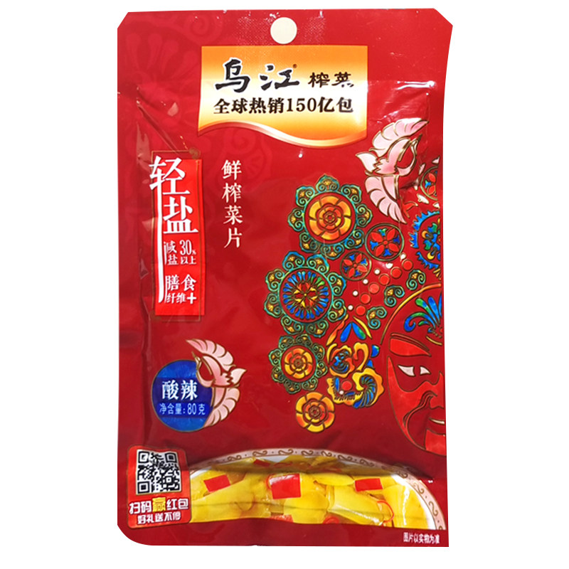 Zhengzong Wujiang River Fuling Pickled Vegetable Acid Spicy Flavor Fresh pressed vegetable slices 80g * 100 Bag One box to load down the rice dish Chongqing Special