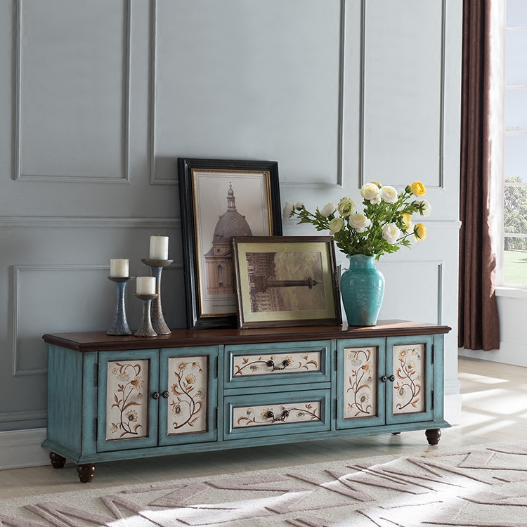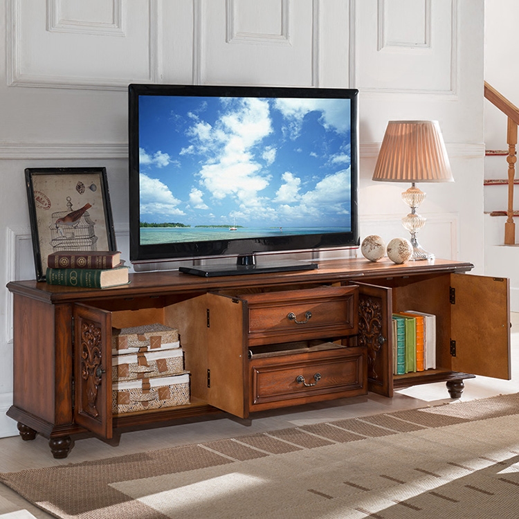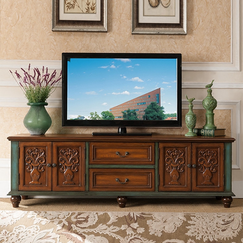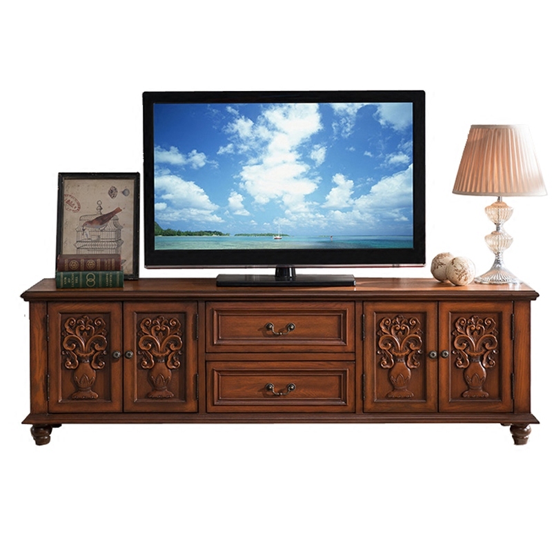 European-style TV cabinet solid wood floor cabinet American country retro old 18 meters TV cabinet living room furniture