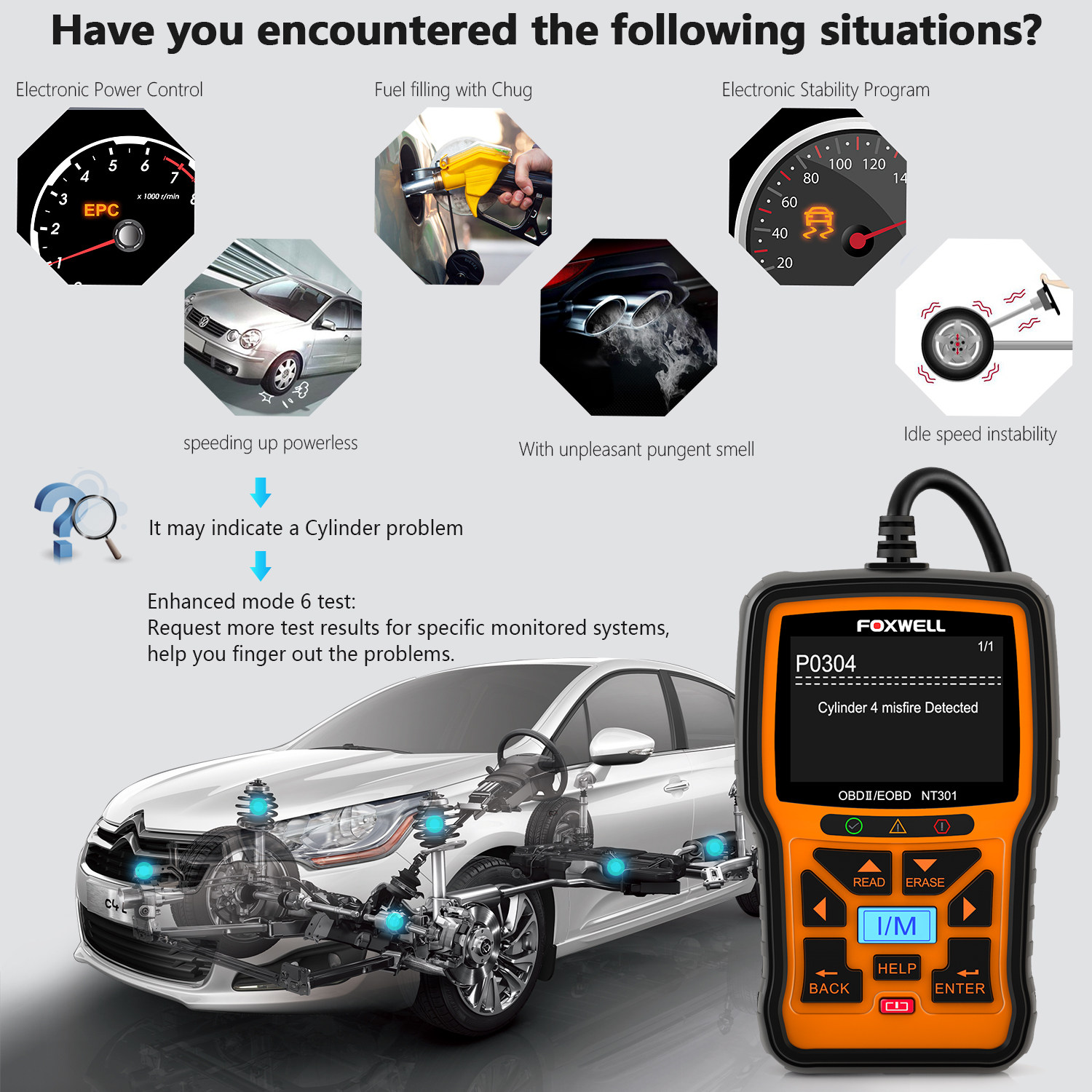 FOXWELL NT301 OBDII Automotive Scanner Car Diagnostic Tool