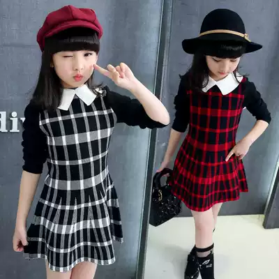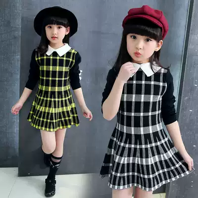 Children's clothing 2021 Korean girls knitted dress Spring and Autumn long sleeve plaid princess dress children's sweater dress college style