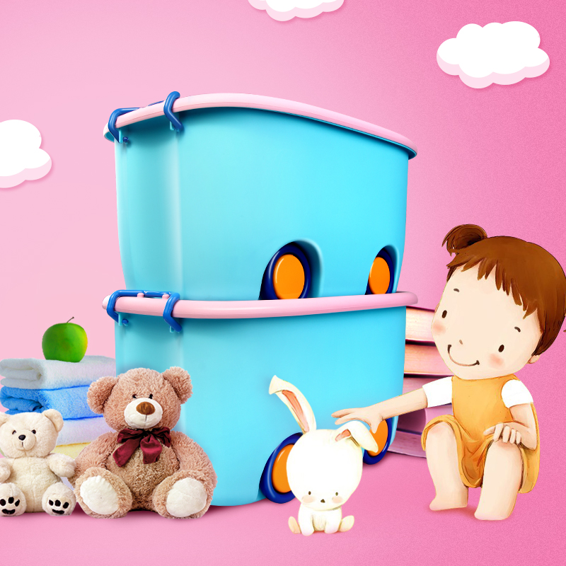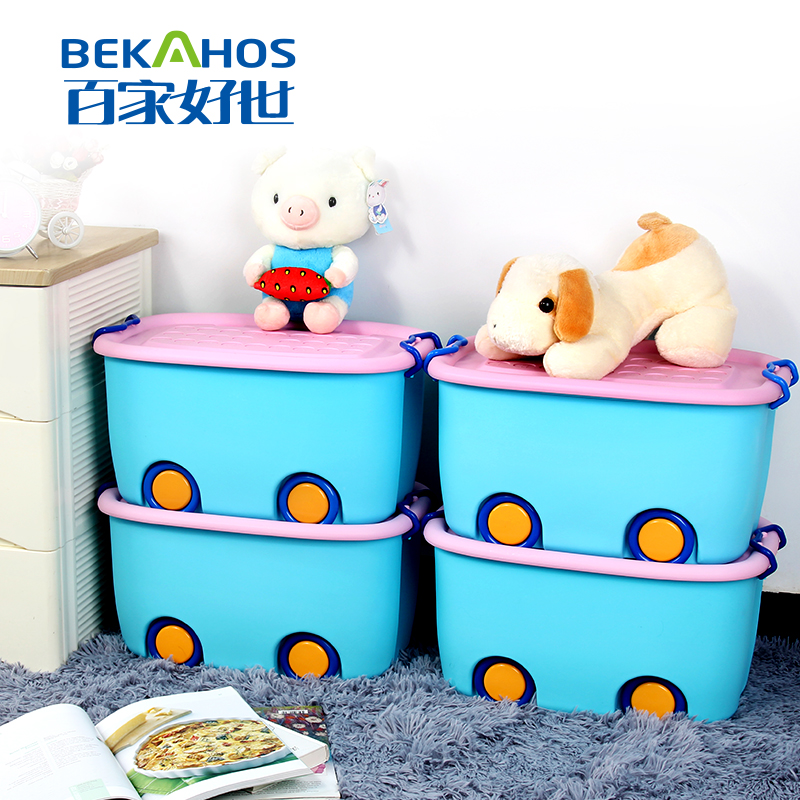 Baijia Goodworld children's storage box with wheels plastic toys organized with lid children's clothes organizing box storage box