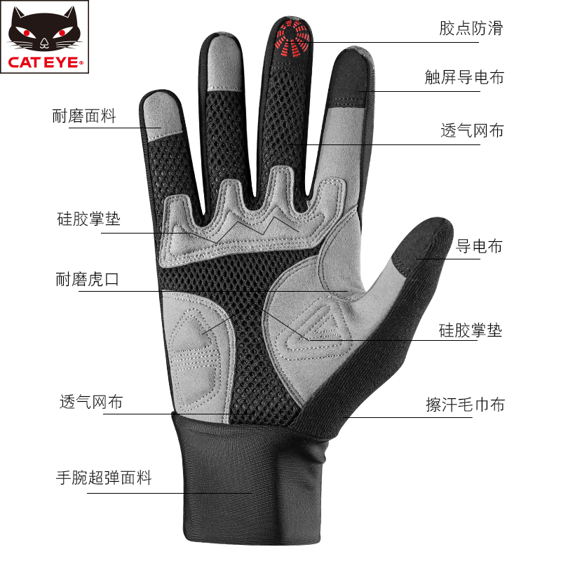 CATEYE cat eye riding gloves long finger mountain road bike spring and autumn and winter men and women breathable non-slip shock absorption