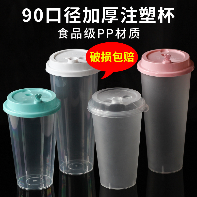 90 caliber injection cup 500 700 disposable milk tea plastic cup tribute tea cup thickened with lid juice cold drink cup