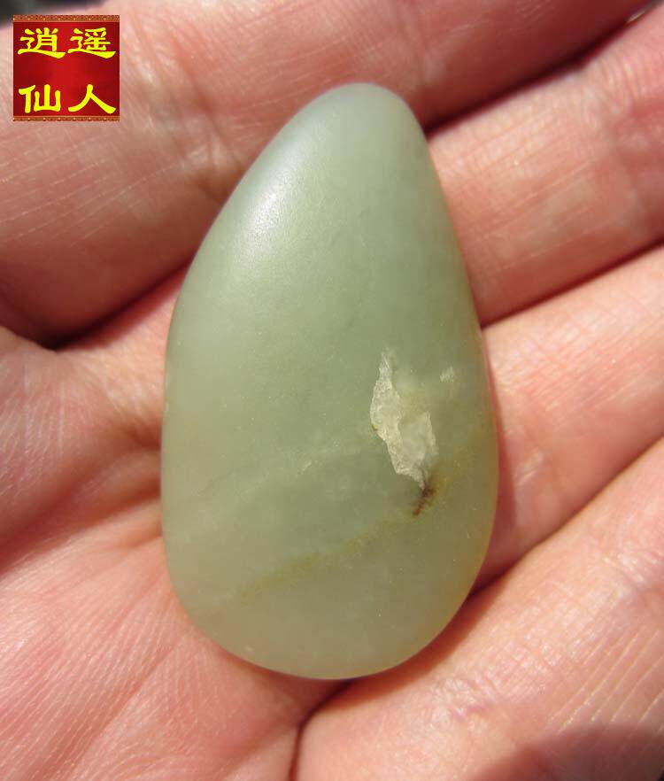 (Runaway Immortal) water drop shape green white jade and field seed material ◆ not old package retreat