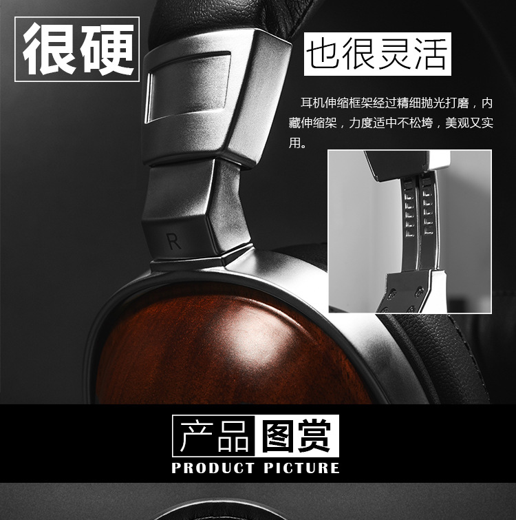 Head-mounted wooden beryllium film 50mm unit unilateral 3 5 gold-plated wire HIFI sound quality sports tablet headphones