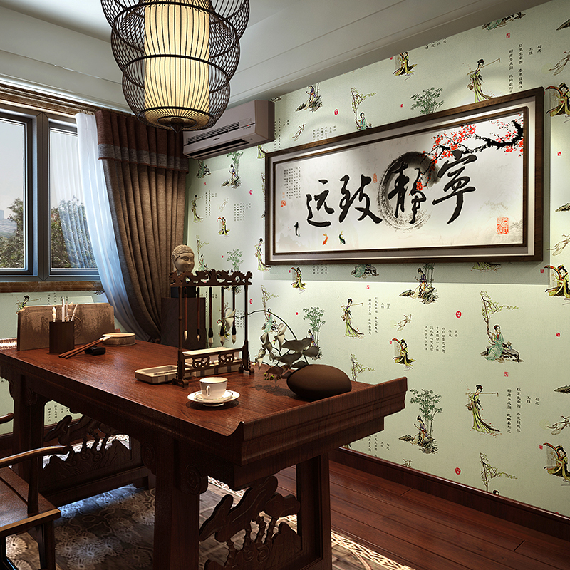 Chinese style wallpaper imitation ancient background Tea room Tea House Dining Room Dining Room Small Dining Room Commercial Furnishing box wallpaper
