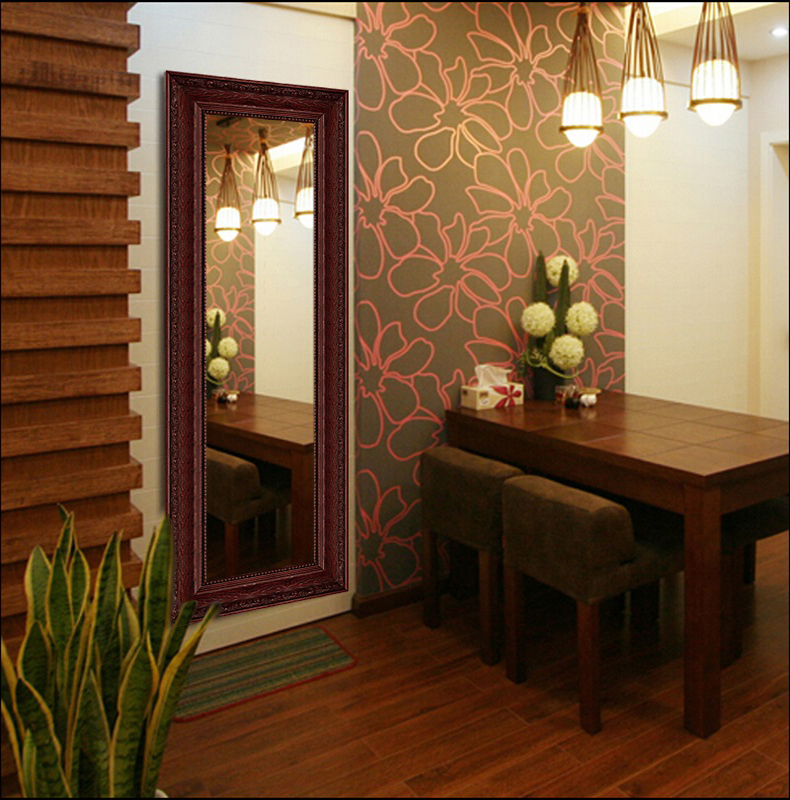 American country solid wood frame full-length mirror Chinese carved clothing store Full-length mirror strip bracket Large-size mirror