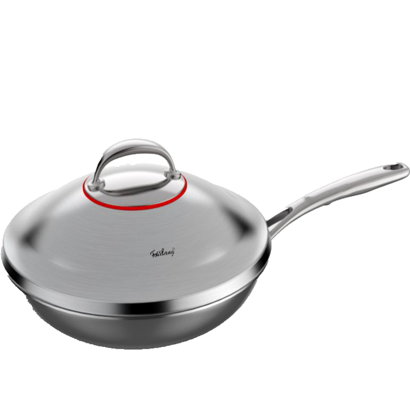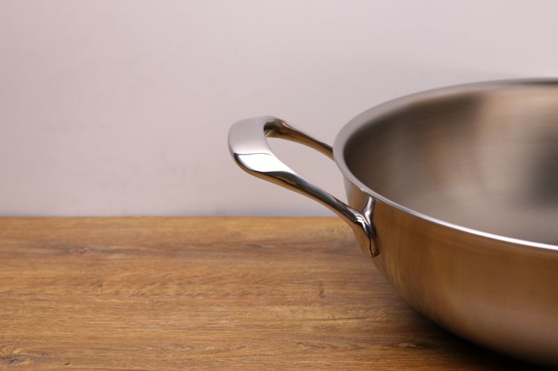 Good quality 18 10 stainless steel 304 frying pan uncoated less oil fume spot welding handle composite steel 32cm gift