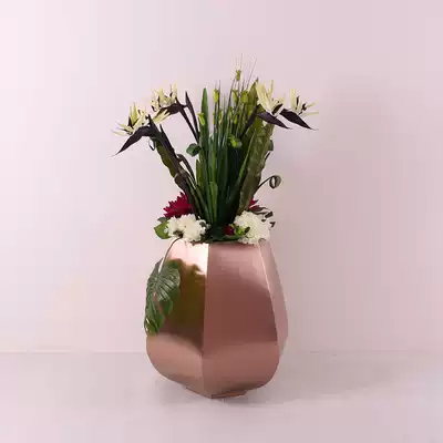 BÖRLIND Hotel flower vase electroplated bronze flower pot Lobby display square flower box Shopping mall decoration modern