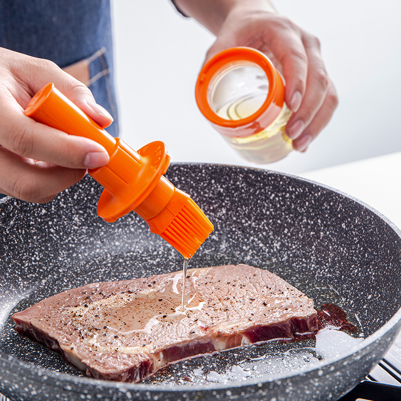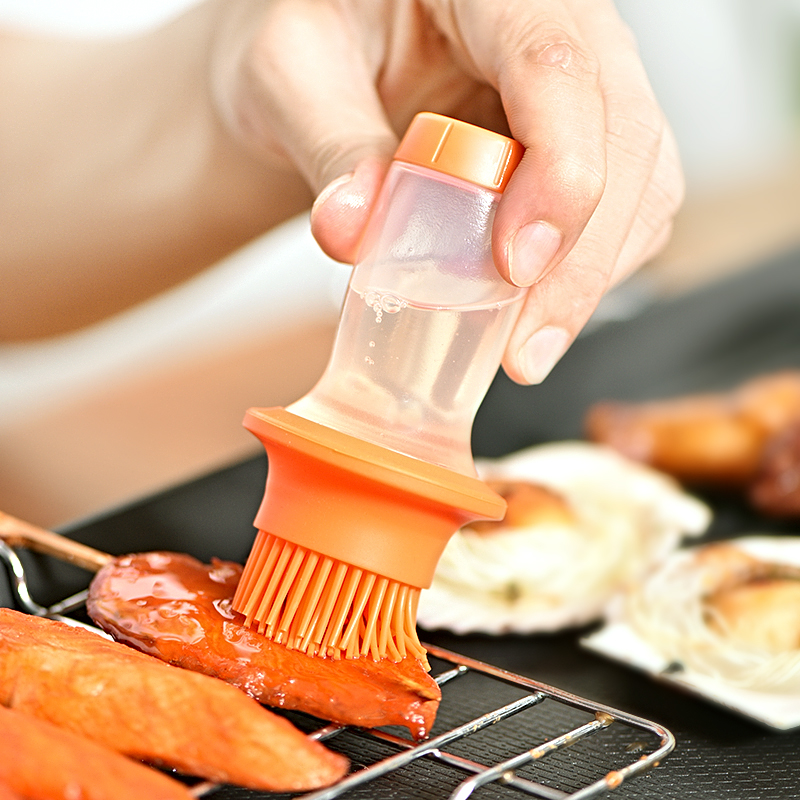 asvel oil brush with bottle Kitchen oil bottle pancake Household oil brush One-piece high temperature silicone brush Small oil pot brush