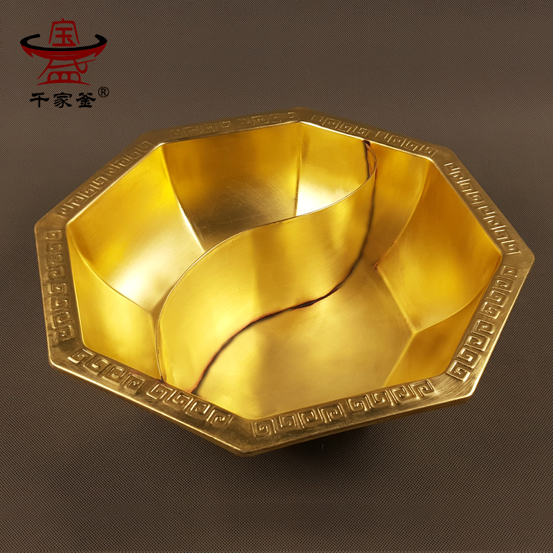 Pure brass octagonal basin sun basin son mother hot pot induction cooker copper hot pot mandarin duck hot pot clear soup copper hot pot