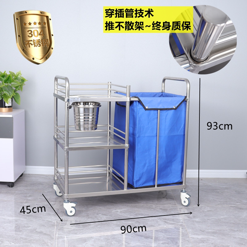 304 stainless steel dirt car thickened three-layer nursing car square circular sweeper car morning escort car is served cleaning car