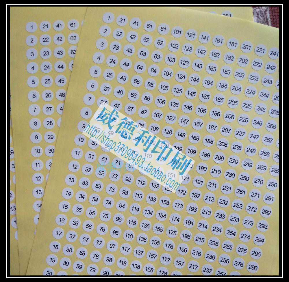 Spot 1CM number 1-300 self-adhesive label color round sticker plus adhesive serial number can be customized waterproof