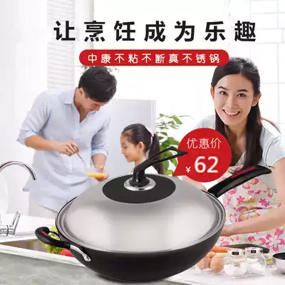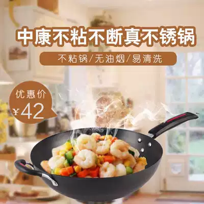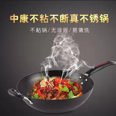 Zhongkang non-stick non-stick iron pan Flat bottom round bottom uncoated wok Gas stove Suitable for induction cooker fume-free pot