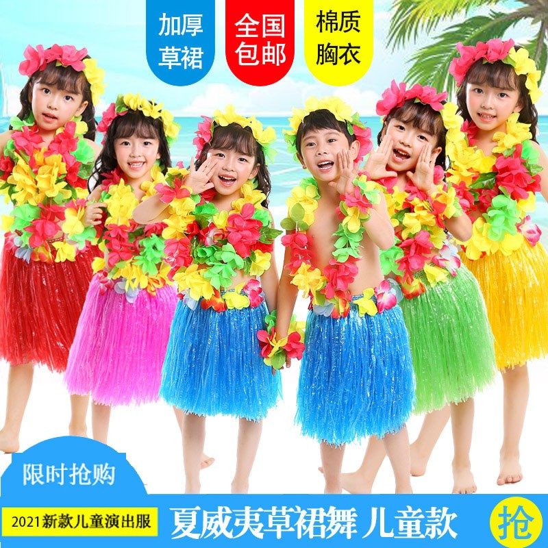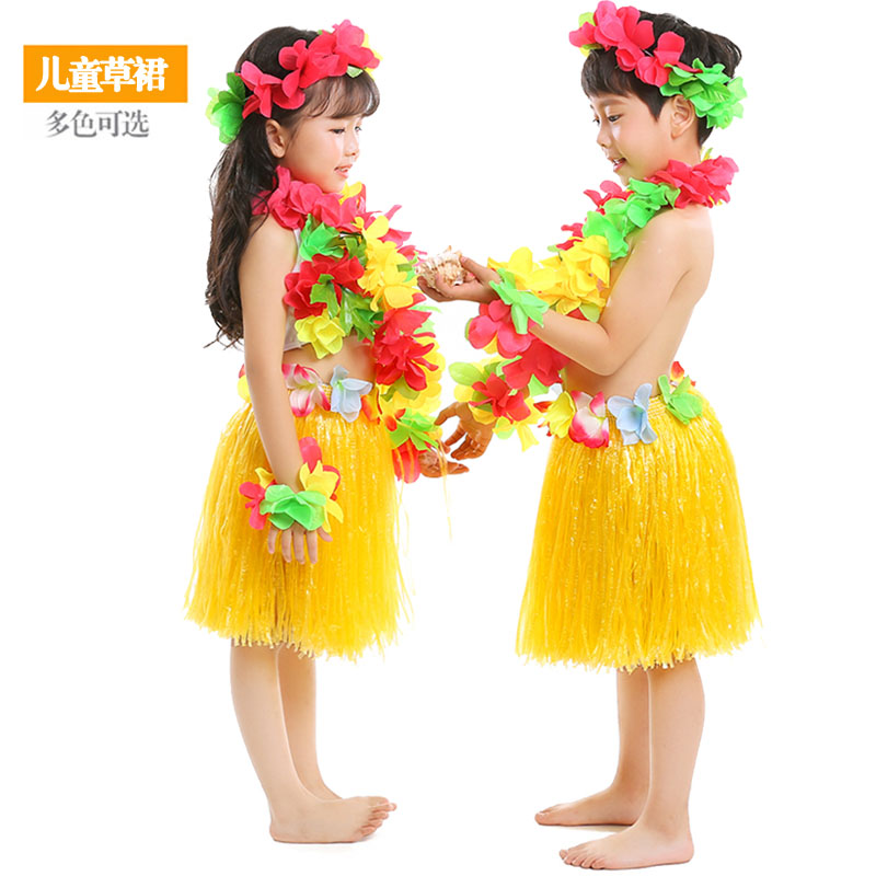 Children's seaweed dance performance clothing kindergarten performance environmental protection clothing props 40 Hawaiian hula dance suits for men and women