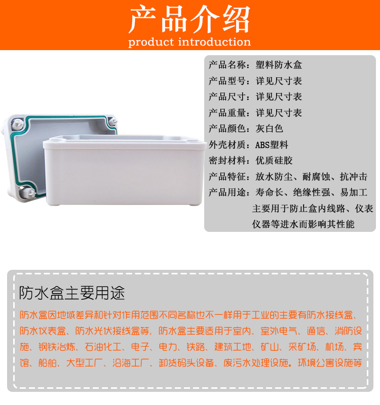 ABS Plastic Waterproof Junction Box Sub Security Monitoring Box Splash Box Seal Box Power Distribution Box IP67