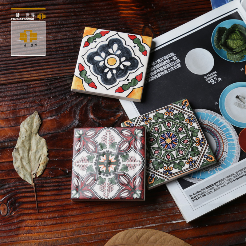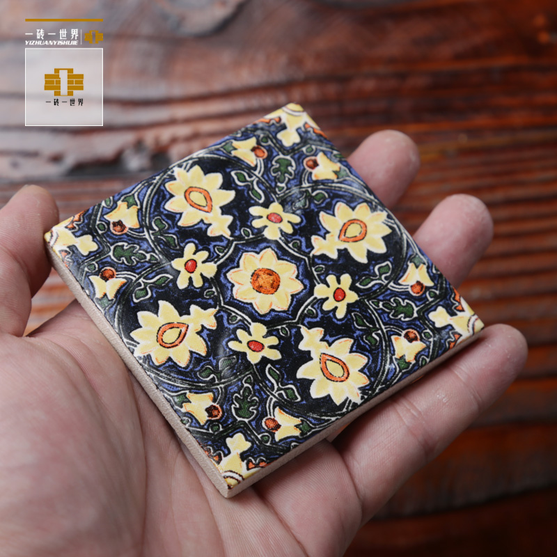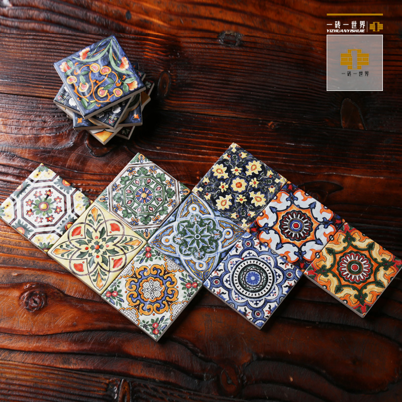Spanish hand painted small flower brick restaurant kitchen stairs brick art background color flower tile waistline tile 80