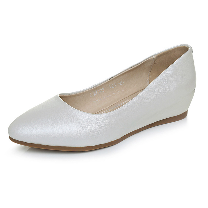Single shoe woman true leather leather flat bottom Shallow Mouth Nurse Shoes inside heightening women's shoes Slope heel Soft bottom beauty salon working little white shoes