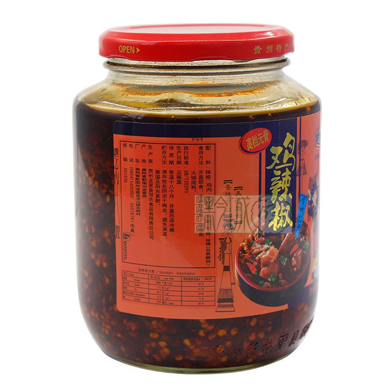 Dragon Mile Dunn Chicken Chili Guizhou Teprote Long Lane Dunn's Spineless Chicken Chili Pepper spicy Chicken Glass Bottle 890g