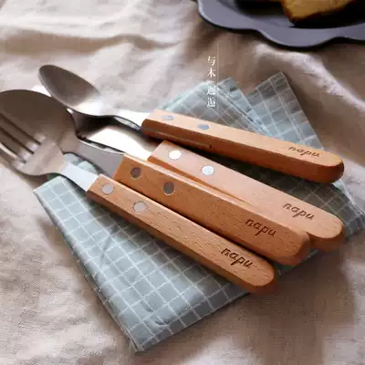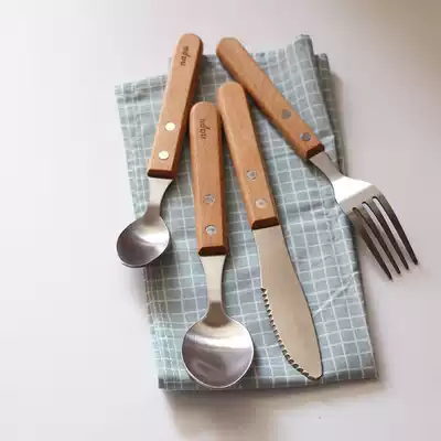 Main meal spoon, wooden handle, main knife, wooden handle, wooden handle, wooden handle, three-piece set, as shown in four-piece set, No logo