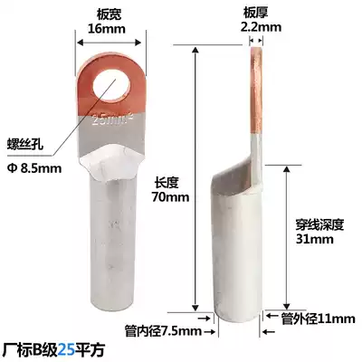 DTL-25 square copper-aluminum nose Copper-aluminum transition terminal block aluminum wire cable connector factory standard class B