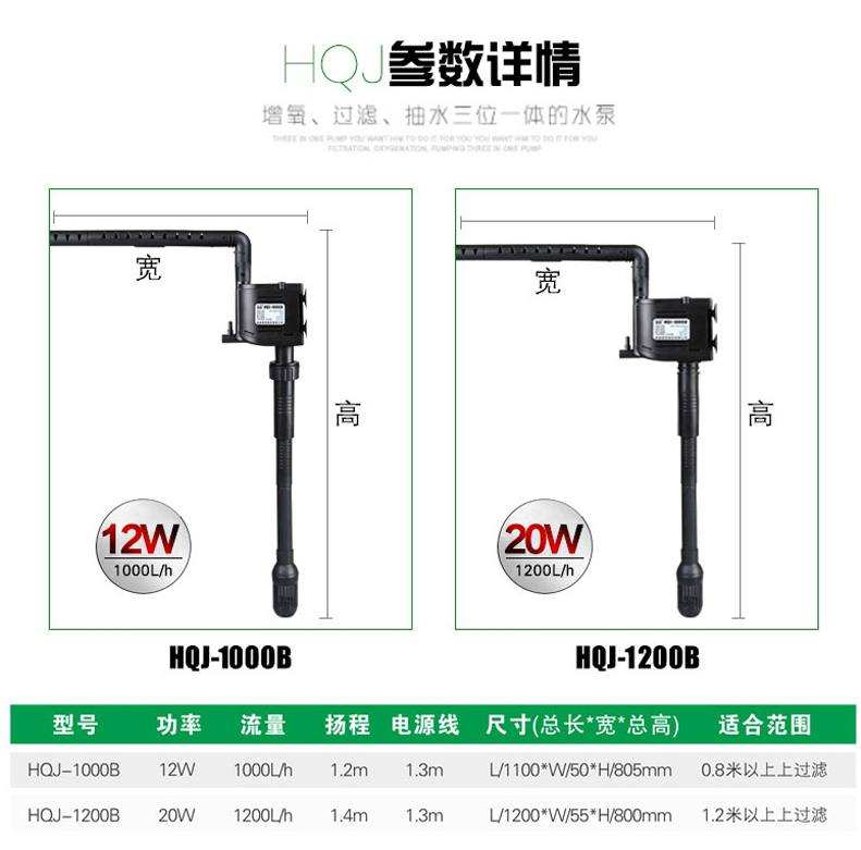HQJ-1000B (0 8-1 8-1 2 m fish tank) presented with filter cotton HQJ-1200B (suitable for more than 1 2 m fish tank) presented filter cotton HQ