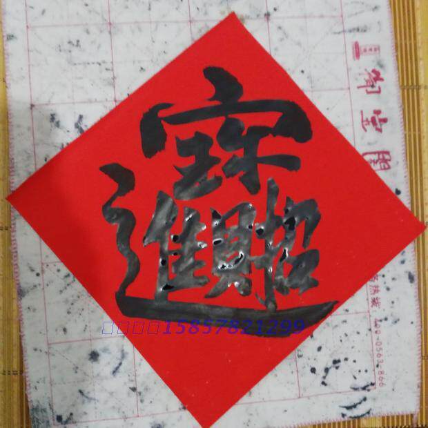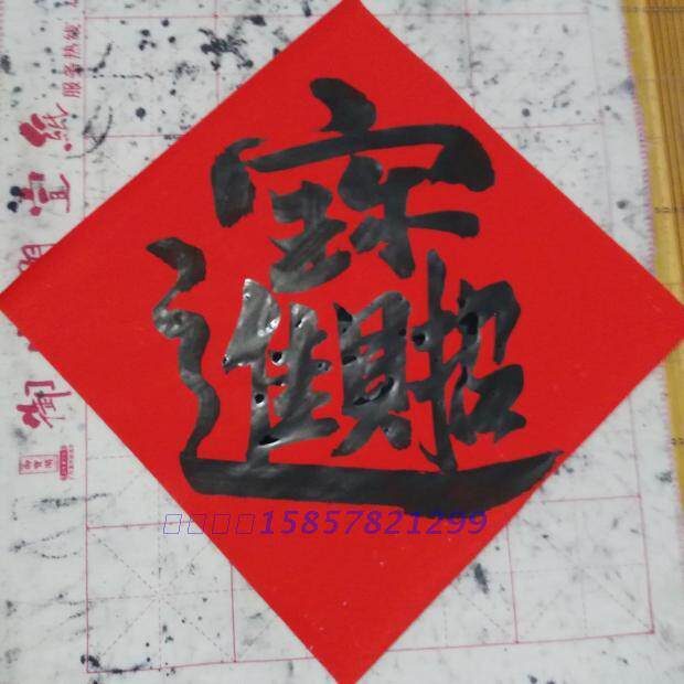 Handwritten Fighting Square Door Amplitude into Baoshigong Red Paper Five yunshan People's relatives write a happy new marriage and a new marriage