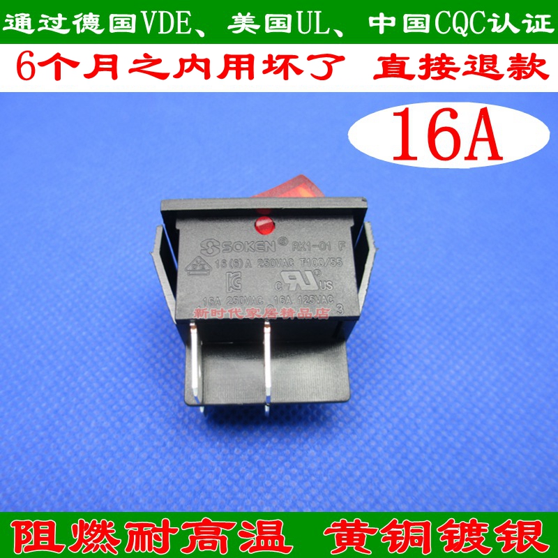 Waterproof boat switch red button with light 4 feet 2 gears silver contact power switch RK1-01 16A 250V