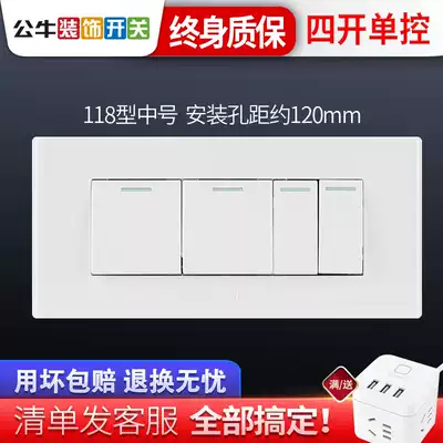 Bull 118 medium switch panel 4-bit power wall switch quadruple four-bit panel four-open single control