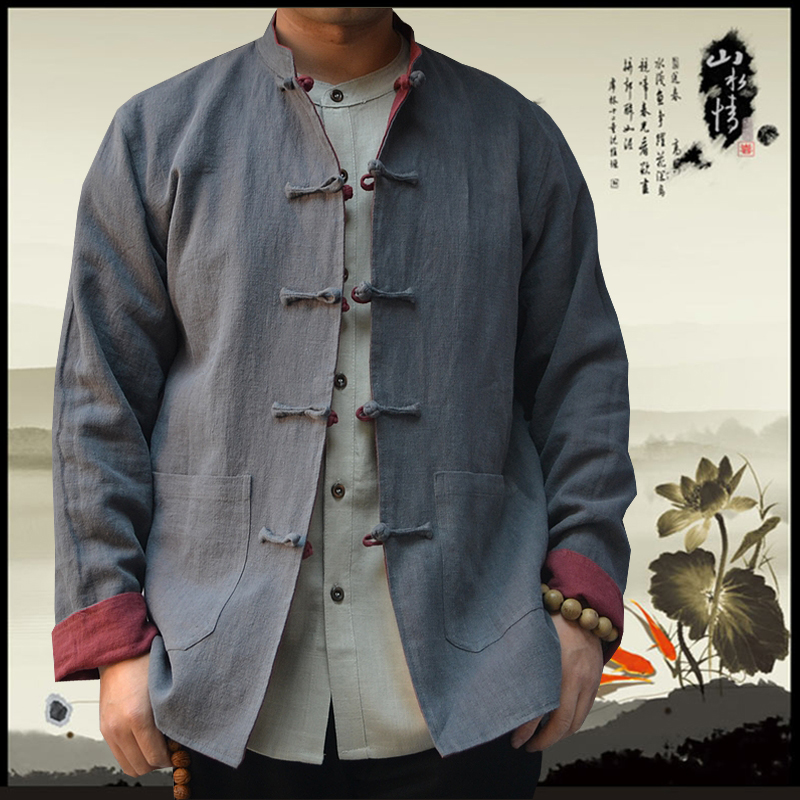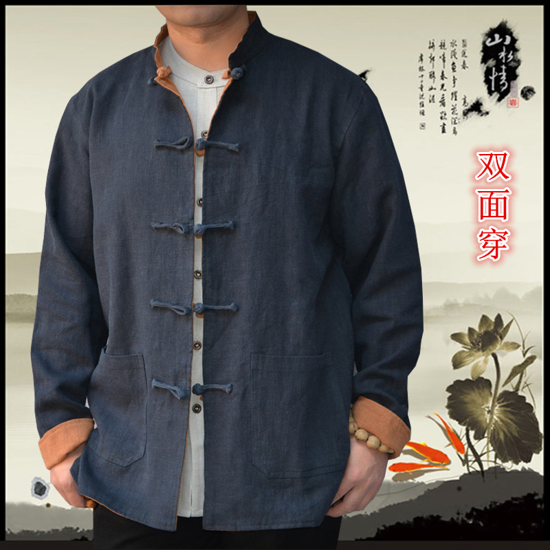 Tang dress Chinese style men's cotton and hemp coat double-sided wear male middle-aged Chinese dad dress casual loose tunic top