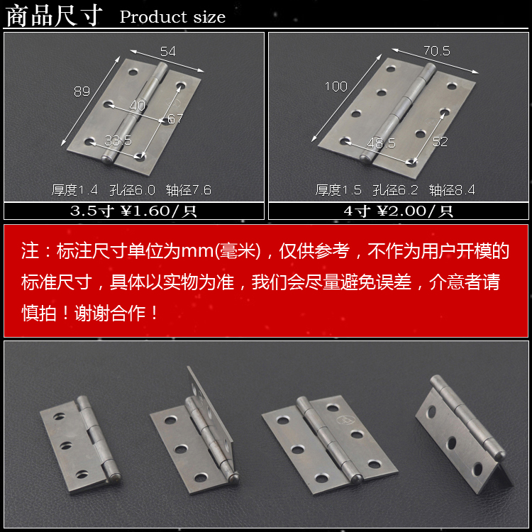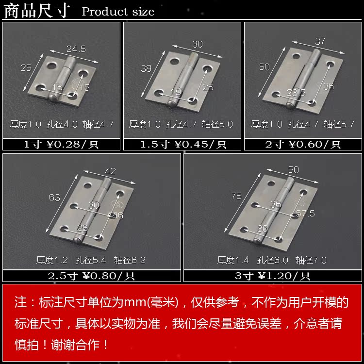 AAA brand iron hinge 1 inch 1 5 inch 2 inch 2 5 inch 3 inch 3 5 inch 4 inch industrial welded hinge Flat open small hinge