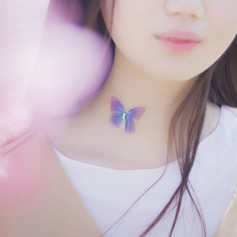 Butterfly Drop Neck Original Invisible Fishing Line Tulle Double Layer Three-Dimensional Butterfly Neck Chain Necklace Choker S925 Silver