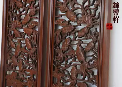 Wood carving partition screen three-dimensional carving TV background wall antique entrance partition Chinese solid wood decoration hanging screen