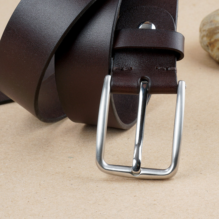 Belt men's leather - simple leisure business middle - aged young belt heads pure cow - leather steel buckle