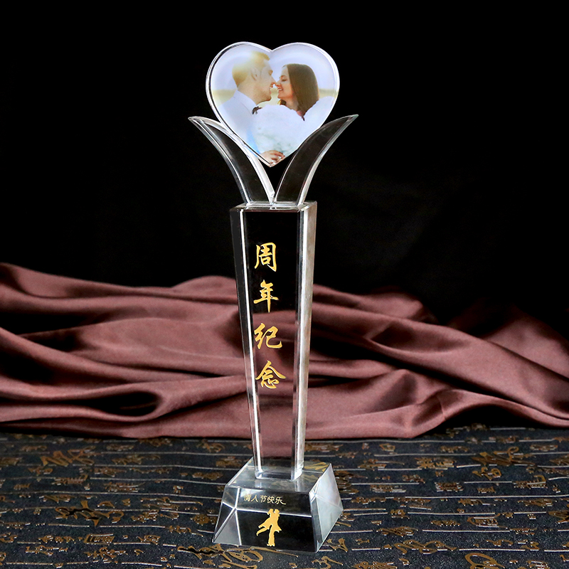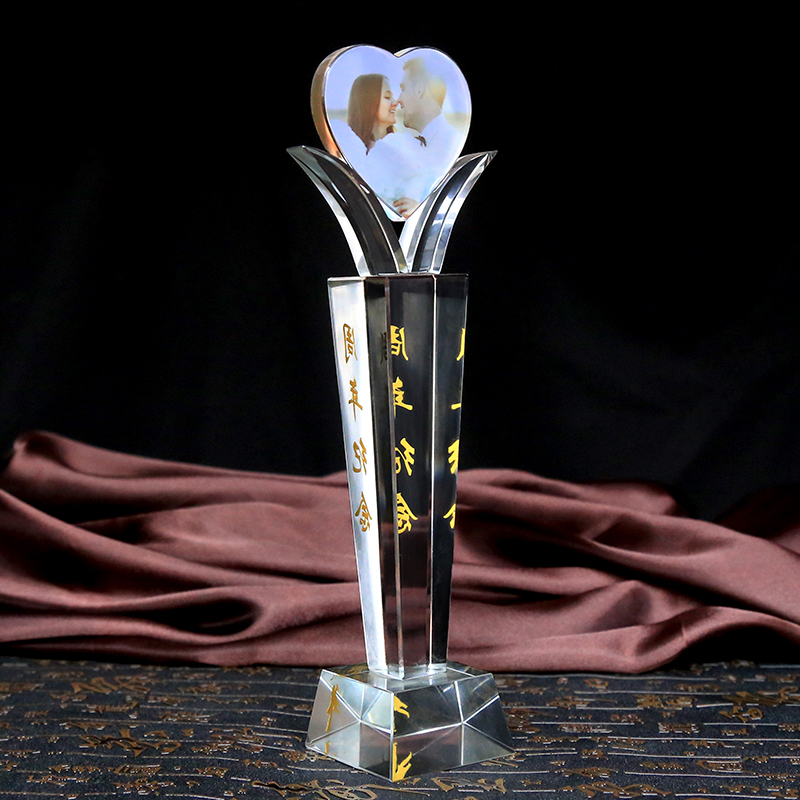 Crystal trophy medal set to be a man and woman gift loving color print photo customised to the Loving Ambassador Award