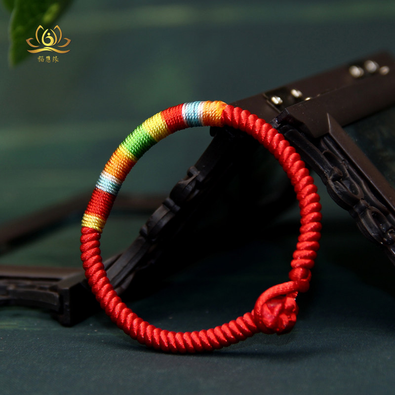 Colorful Wishing Red Rope Tibetan Style Nine Vehicles Diamond Knot Bracelet for Men and Women Tibetan Style Colorful Handmade Rainbow Bracelet