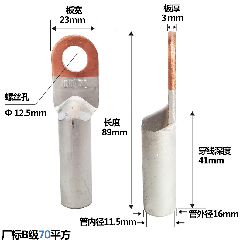 DTL-70 square copper aluminium nose copper aluminium transition wiring terminal aluminium wire cable joint plant PeuB grade