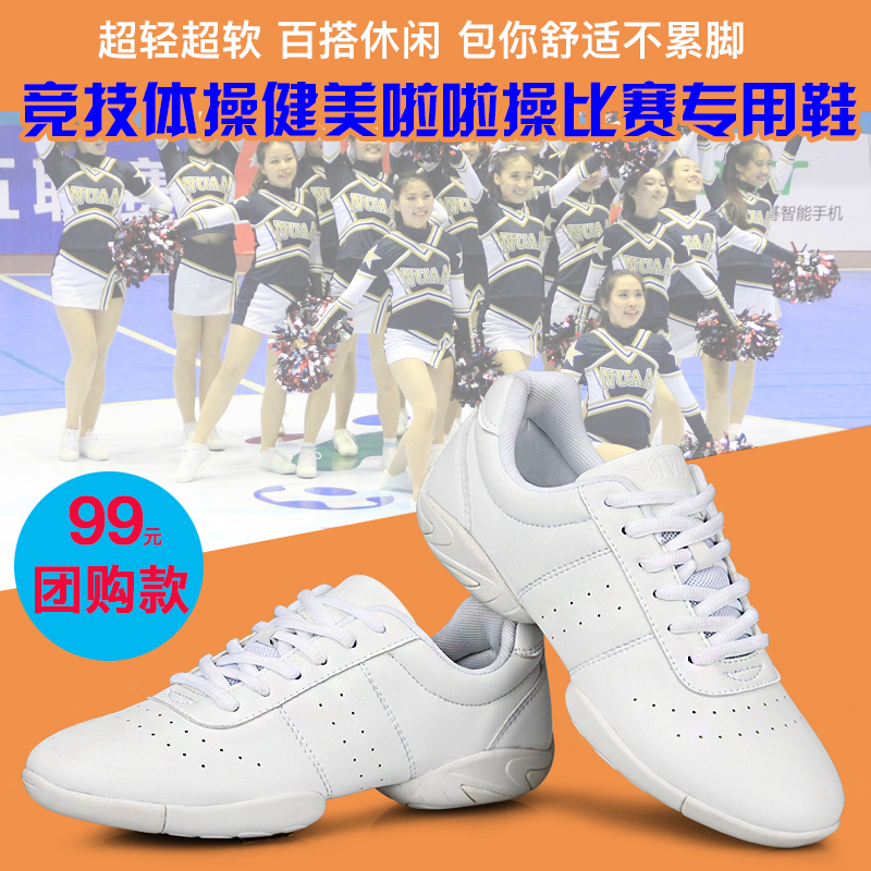 New female athletic gymnastics square dance shoes white soft soles ultra-light cheergy gymnastics training competition shoes