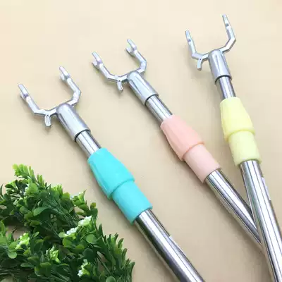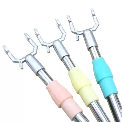 Stainless steel telescopic garment fork support hanger balcony clothes hanger clothes fork pick clothes rod aluminum alloy clothes fork head clothes clothes stand