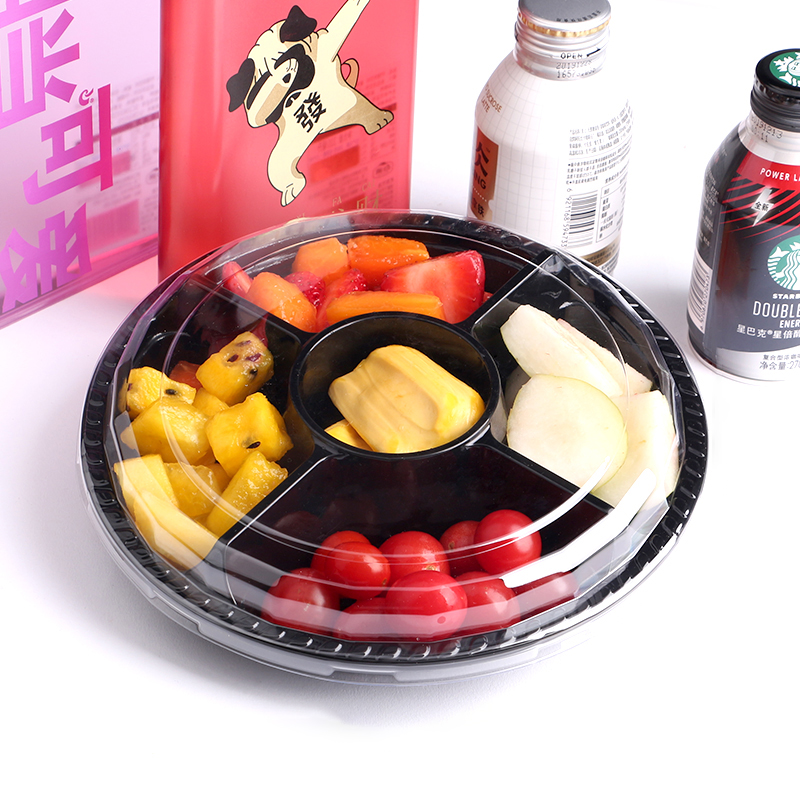 Disposable fruit box plastic compartment fruit cut preservation box platter graphics six grid salad packaging box with cover