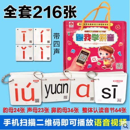 Spot Gift wallchart One pinyin card Double-sided coated punch and I Learn pinyin Thickened Children Early grade Primary students Hanyu pinyin Card learning teaching aids vocal mother rhyme overall admit 4-phonon pinyin cards have