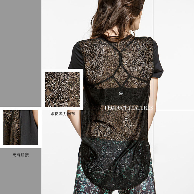 Korean large size fitness sports quick-drying T-shirt women's V-neck blouse Yoga suit Lace sports short-sleeved running top tide