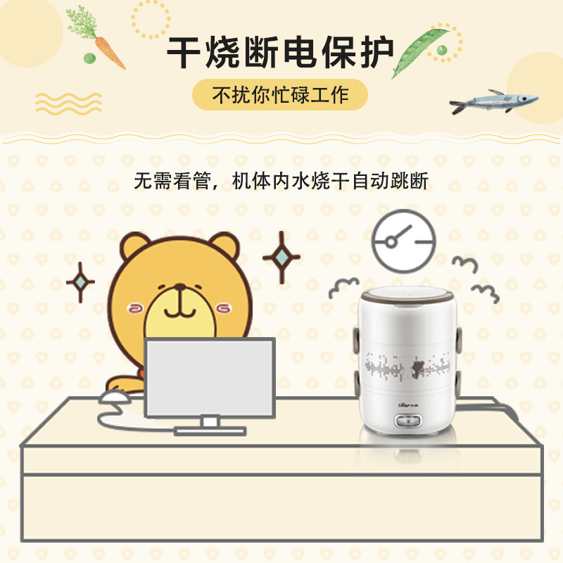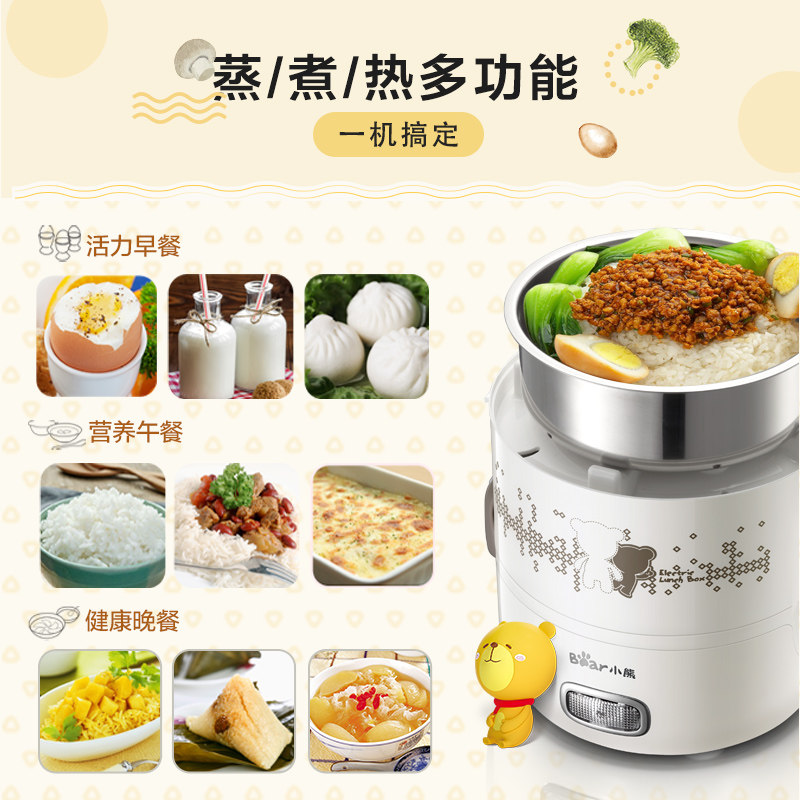 Small bear electric lunch box can be inserted in electric heating insulation lunch box Three layers 1 person -2 people mini electronic pot cooking rice pan