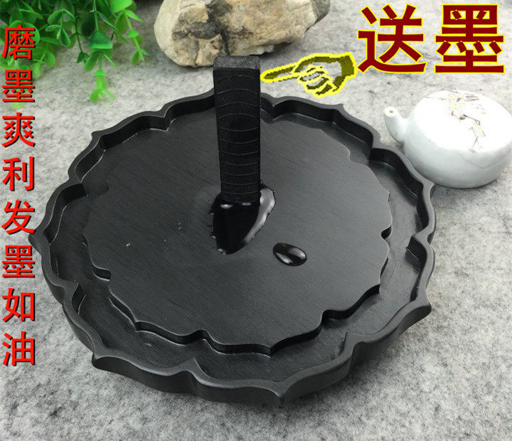 Grandma's home Yan Tang Zen seat Lotus Shexian inkstone hair ink practical tea plate Tea tray pot to send Hui Ink four treasures of Wenfang