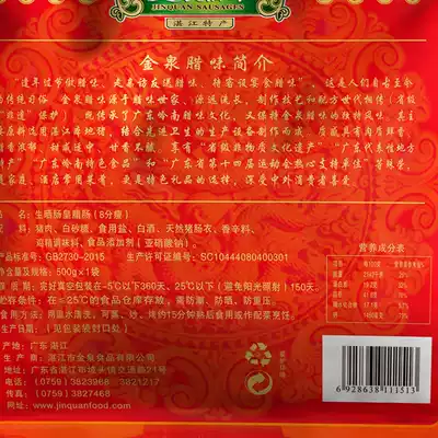 Jinquan waxy raw sun-dried intestines 500g Guangdong Guangchang sausage Zhanjiang Specialty 8 points thin dry farm handmade