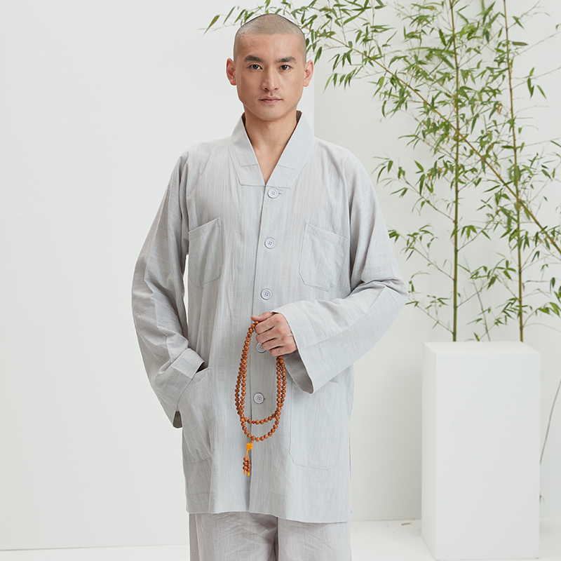 Cifringe monk served in spring and autumn with breathable cotton linen 70% sleeves Long sleeves monks Short coat machine washable monk Monk Clothing Suit-Taobao