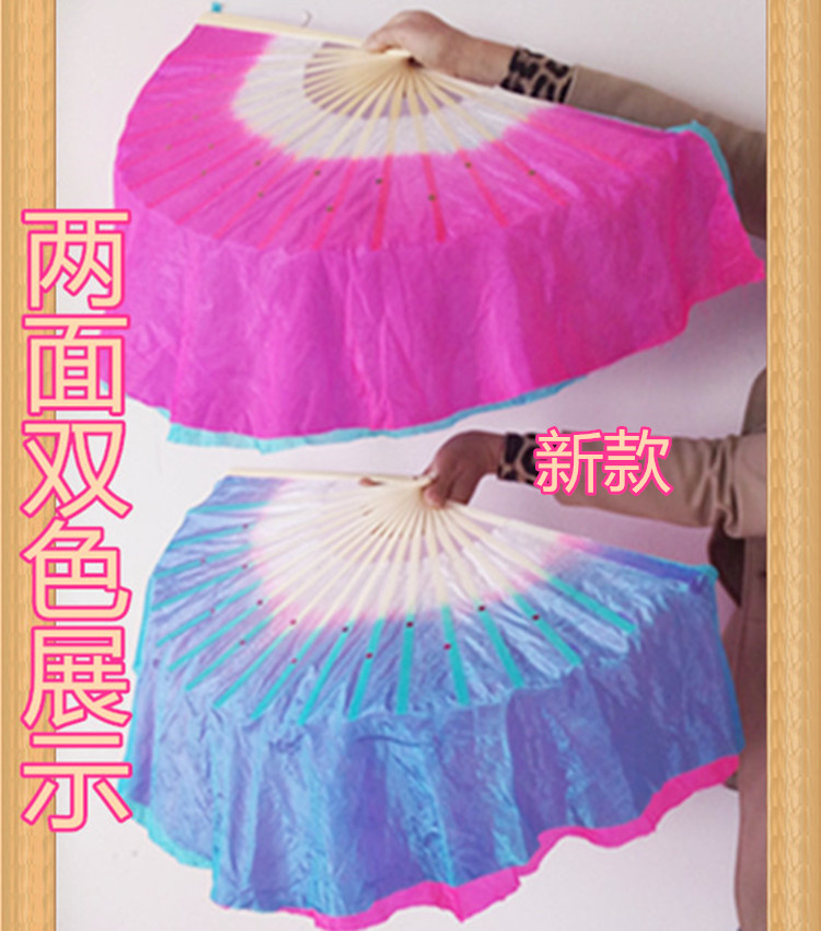 2021 new one-foot two-fan bone jasmine dance double-sided three-color dance performance square fan Yangko fan