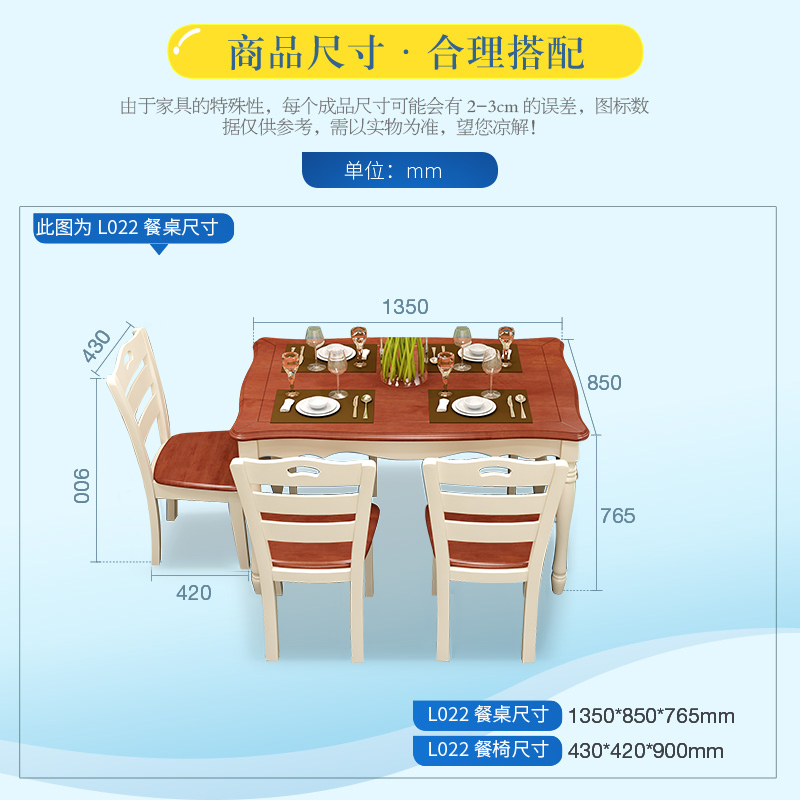 Dining table and chair combination household small family dining table modern simple American Mediterranean style furniture rectangular dining table