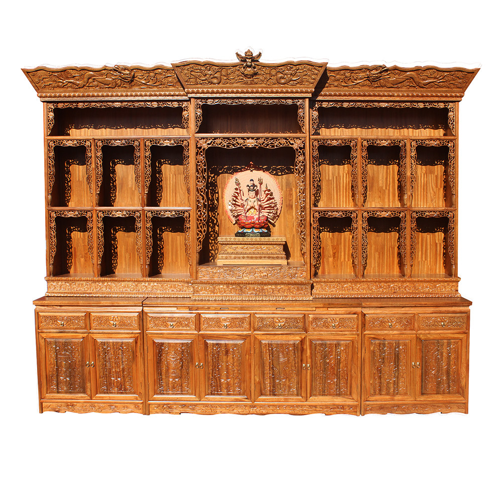 Home Economy Type of Concealed Multilayer Buddha Niche Solid Wood Buddha Table for the Kitchen Cabinet Fragrant Zhangmu Wooden Sculpture Flower Buddha Hall Set to be made