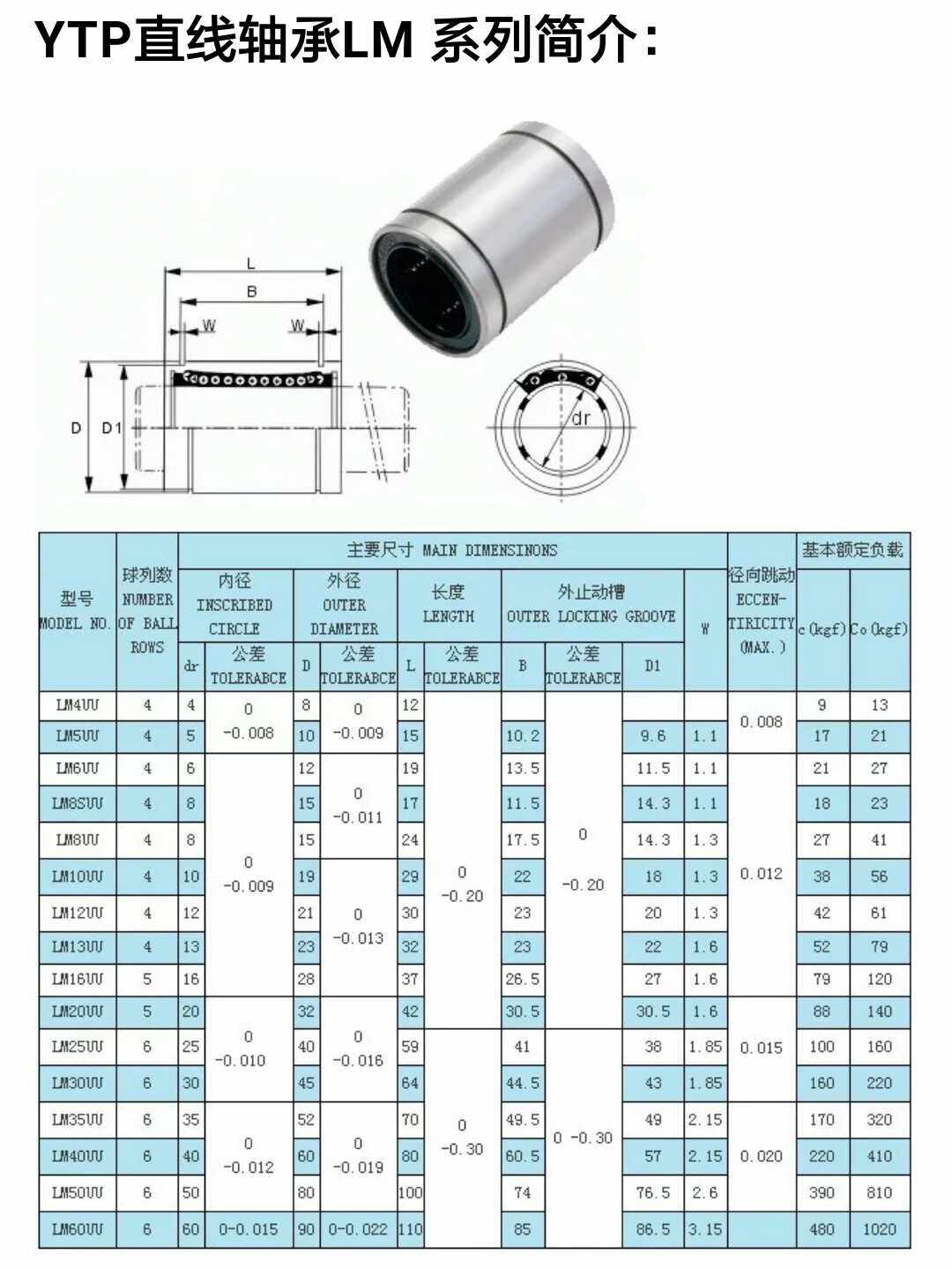 Taiwan YTP Linear Bearings LM3 4 5 6 8 10 12 13 16 20 25 30 35 40 50UU